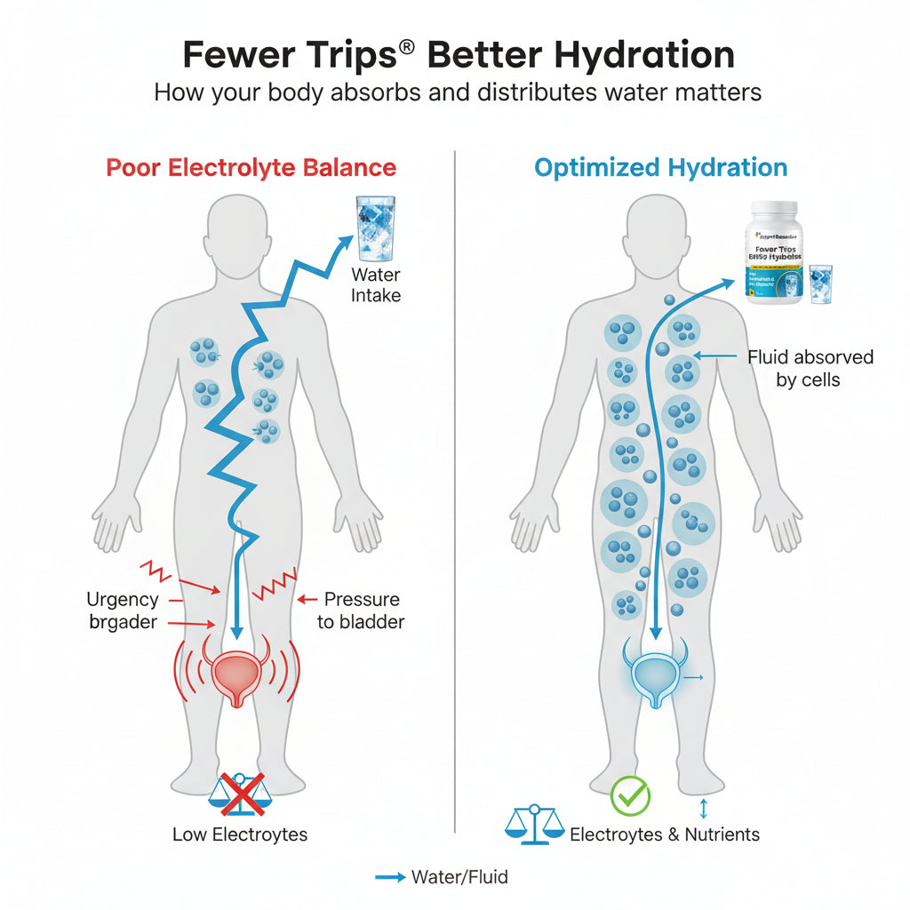 These essential electrolytes help guide water into your cells instead of rushing straight to the bladder. Proper balance supports smoother hydration, reducing sudden pressure and urgency after drinking.